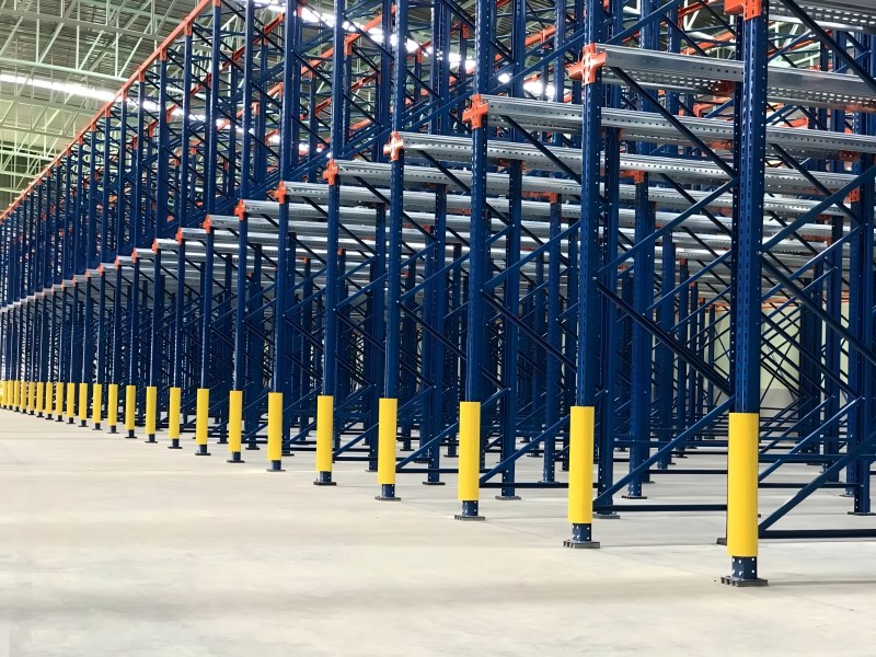 Para garantir segurança e durabilidade, os sistemas de estantes drive-in incorporam: